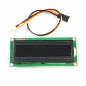 This is a standard 16 character by 2 line display. White text on Blue background. Utilizes the extremely common HD44780 parallel interface chipset (datasheet). Interface code is freely available. You will need ~11 general I/O pins to interface to this LCD screen.