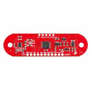 The ZX Distance and Gesture Sensor is a touchless sensor that is capable of looking for simple gestures. Developed in conjunction with XYZ Interactive, the sensor uses their GestureSense® technology to recognize the distance of an object away from the sensor up to about 12 inches (30cm, referred to as the "Z" axis) and the location of the object from side to side across the sensor in about a 6-inch (15cm) span, referred to as the "X" axis. You will be able to use I2C or UART to communicate with the ZX Sensor via a microcontroller or computer.