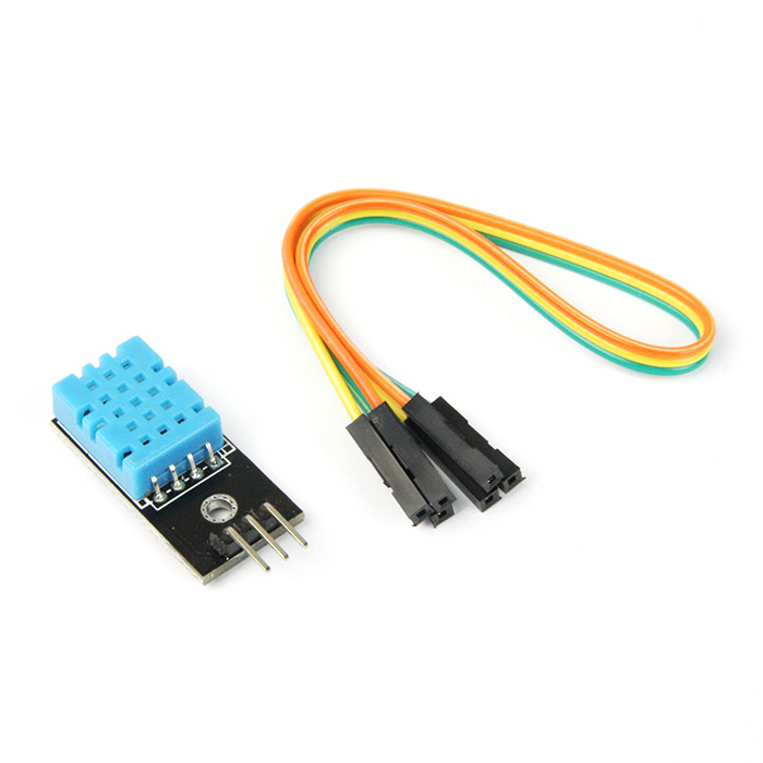 The DHT11 is a basic, ultra low-cost digital temperature and humidity sensor. It uses a capacitive humidity sensor and a thermistor to measure the surrounding air, and spits out a digital signal on the data pin (no analog input pins needed).