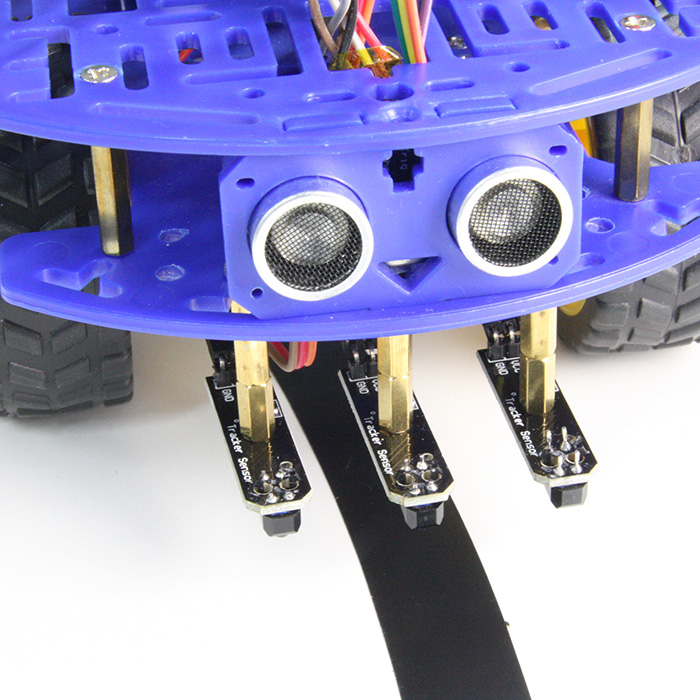 The Line Follower sensor gives your robot the ability to detect lines or nearby objects. The sensor works by detecting reflected light coming from its own infrared LED. It can detect transitions from light to dark (lines) or even objects directly in front of it.