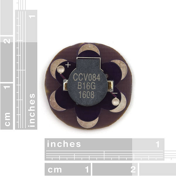 This is a small buzzer for the LilyPad system. Use 2 I/O pins on the LilyPad main board and create different noises based on the different frequency of I/O toggling. Loud enough to hear inside a pocket but not obtrusively loud.